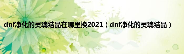 大家好,精选小编来为大家解答以上问题。dnf净化的灵魂结晶在哪里换2021,dnf净化的灵魂结晶很多人还不知道,现在让我们一起来看看吧!