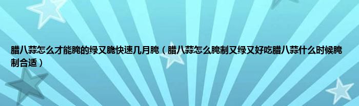 大家好,小科来为大家解答以上问题。腊八蒜怎么才能腌的绿又脆快速几月腌,腊八蒜怎么腌制又绿又好吃腊八蒜什么时候腌制合适很多人还不知道,现在让我们一起来看看吧!