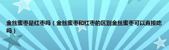 大家好,小科来为大家解答以上问题。金丝蜜枣是红枣吗,金丝蜜枣和红枣的区别金丝蜜枣可以直接吃吗很多人还不知道,现在让我们一起来看看吧!