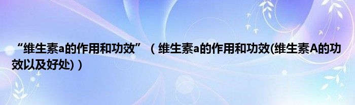 大家好,小科来为大家解答以上问题。“维生素a的作用和功效”,维生素a的作用和功效(维生素A的功效以及好处)很多人还不知道,现在让我们一起来看看吧!