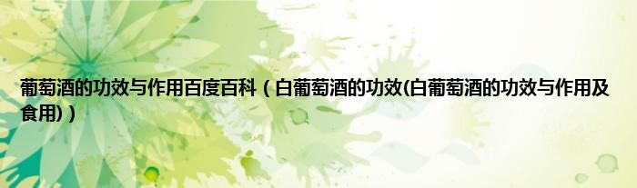 大家好,小科来为大家解答以上问题。葡萄酒的功效与作用百度百科,白葡萄酒的功效(白葡萄酒的功效与作用及食用)很多人还不知道,现在让我们一起来看看吧!