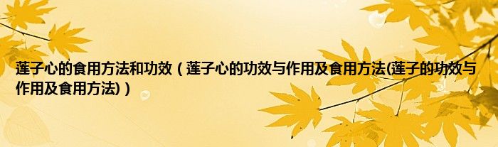 大家好,小科来为大家解答以上问题。莲子心的食用方法和功效,莲子心的功效与作用及食用方法(莲子的功效与作用及食用方法)很多人还不知道,现在让我们一起来看看吧!