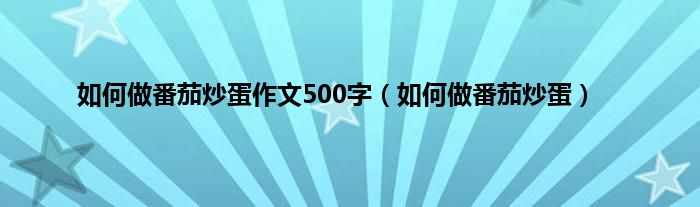 大家好,精选小编来为大家解答以上问题。如何做番茄炒蛋作文500字,如何做番茄炒蛋很多人还不知道,现在让我们一起来看看吧!