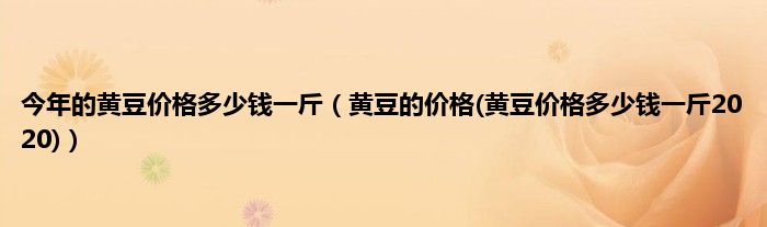 大家好,小科来为大家解答以上问题。今年的黄豆价格多少钱一斤,黄豆的价格(黄豆价格多少钱一斤2020)很多人还不知道,现在让我们一起来看看吧!