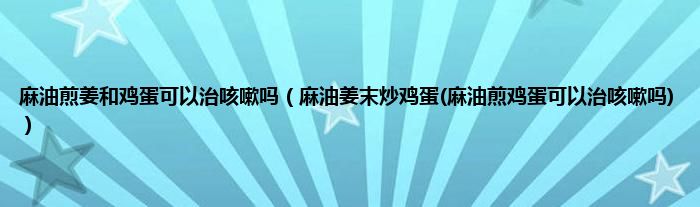 大家好,小科来为大家解答以上问题。麻油煎姜和鸡蛋可以治咳嗽吗,麻油姜末炒鸡蛋(麻油煎鸡蛋可以治咳嗽吗)很多人还不知道,现在让我们一起来看看吧!