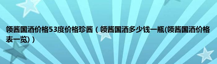 大家好,小科来为大家解答以上问题。领酱国酒价格53度价格珍酱,领酱国酒多少钱一瓶(领酱国酒价格表一览)很多人还不知道,现在让我们一起来看看吧!