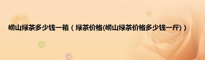 大家好,小科来为大家解答以上问题。崂山绿茶多少钱一箱,绿茶价格(崂山绿茶价格多少钱一斤)很多人还不知道,现在让我们一起来看看吧!
