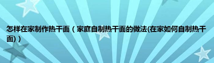 大家好,小科来为大家解答以上问题。怎样在家制作热干面,家庭自制热干面的做法(在家如何自制热干面)很多人还不知道,现在让我们一起来看看吧!