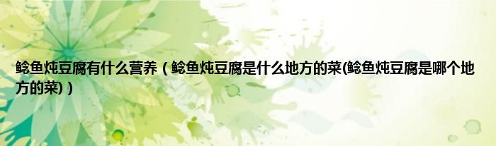 大家好,小科来为大家解答以上问题。鲶鱼炖豆腐有什么营养,鲶鱼炖豆腐是什么地方的菜(鲶鱼炖豆腐是哪个地方的菜)很多人还不知道,现在让我们一起来看看吧!