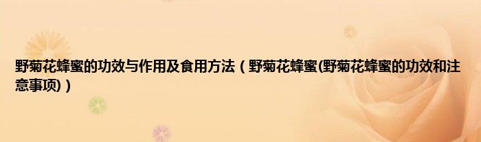 大家好,小科来为大家解答以上问题。野菊花蜂蜜的功效与作用及食用方法,野菊花蜂蜜(野菊花蜂蜜的功效和注意事项)很多人还不知道,现在让我们一起来看看吧!