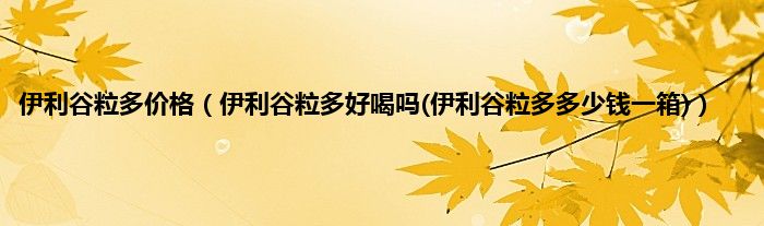 大家好,小科来为大家解答以上问题。伊利谷粒多价格,伊利谷粒多好喝吗(伊利谷粒多多少钱一箱)很多人还不知道,现在让我们一起来看看吧!