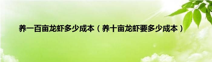 养十亩龙虾要多少成本,大约要花10万元。这些都是需要钱的,10万肯定是要的。现在很多人都喜欢吃龙虾,在市场上很受食客欢迎,所以不要怕10万的成本收不回来,很快就能赚到钱。