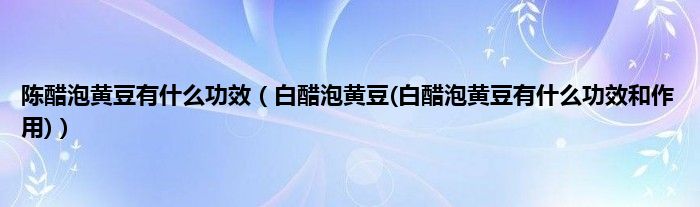 3.浸泡方法:鲜黄豆250g,醋200g。制作方法:鲜黄豆250g,醋泡15天。用法:每天取10粒左右的豆子,嚼碎。功效:软化肌肤,淡化色素。醋豆含有磷脂和多种氨基酸,能促进皮肤细胞的新陈代谢,降低胆固醇,改善肝功能,延缓衰老。
