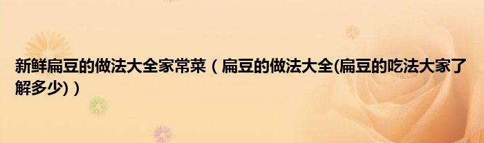 大家好,小科来为大家解答以上问题。新鲜扁豆的做法大全家常菜,扁豆的做法大全(扁豆的吃法大家了解多少)很多人还不知道,现在让我们一起来看看吧!