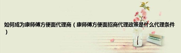 大家好,小科来为大家解答以上问题。如何成为康师傅方便面代理商,康师傅方便面招商代理政策是什么代理条件很多人还不知道,现在让我们一起来看看吧!