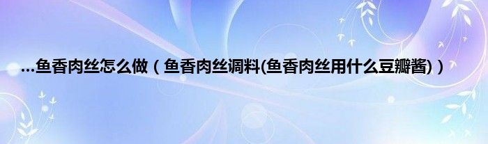 大家好,小科来为大家解答以上问题。…鱼香肉丝怎么做,鱼香肉丝调料(鱼香肉丝用什么豆瓣酱)很多人还不知道,现在让我们一起来看看吧!