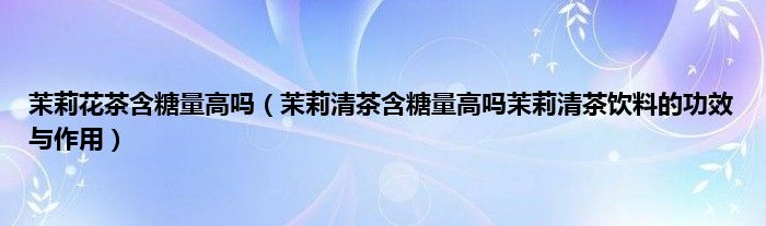 大家好,小科来为大家解答以上问题。茉莉花茶含糖量高吗,茉莉清茶含糖量高吗茉莉清茶饮料的功效与作用很多人还不知道,现在让我们一起来看看吧!