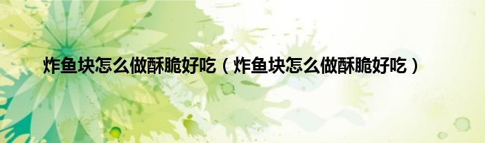 大家好,小科来为大家解答以上问题。炸鱼块怎么做酥脆好吃,炸鱼块怎么做酥脆好吃很多人还不知道,现在让我们一起来看看吧!