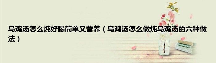 大家好,小科来为大家解答以上问题。乌鸡汤怎么炖好喝简单又营养,乌鸡汤怎么做炖乌鸡汤的六种做法很多人还不知道,现在让我们一起来看看吧!