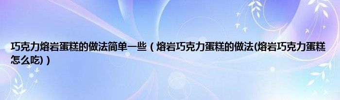 大家好,小科来为大家解答以上问题。巧克力熔岩蛋糕的做法简单一些,熔岩巧克力蛋糕的做法(熔岩巧克力蛋糕怎么吃)很多人还不知道,现在让我们一起来看看吧!