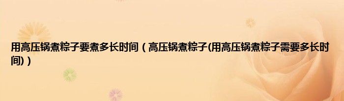 大家好,小科来为大家解答以上问题。用高压锅煮粽子要煮多长时间,高压锅煮粽子(用高压锅煮粽子需要多长时间)很多人还不知道,现在让我们一起来看看吧!