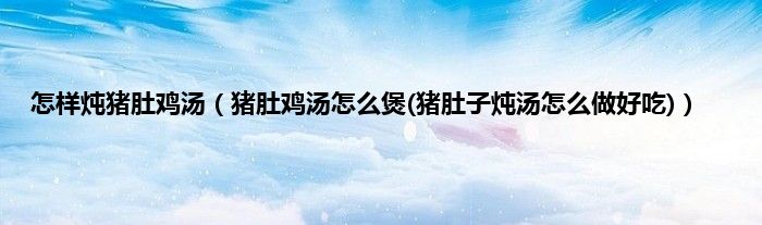 大家好,小科来为大家解答以上问题。怎样炖猪肚鸡汤,猪肚鸡汤怎么煲(猪肚子炖汤怎么做好吃)很多人还不知道,现在让我们一起来看看吧!