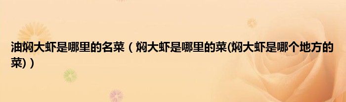 大家好,小科来为大家解答以上问题。油焖大虾是哪里的名菜,焖大虾是哪里的菜(焖大虾是哪个地方的菜)很多人还不知道,现在让我们一起来看看吧!