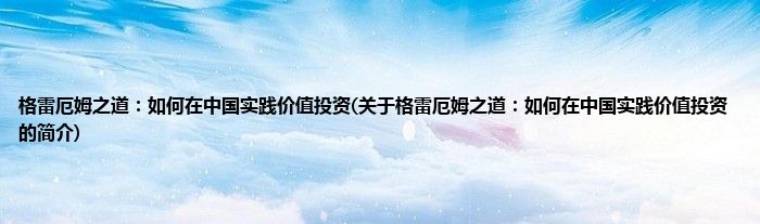 本文关于格雷厄姆之道:如何在中国实践价值投资的简介就讲解完毕,希望对大家有所帮助。