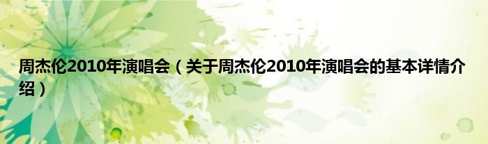周杰伦2010年演唱会(关于周杰伦2010年演唱会的基本详情介绍)