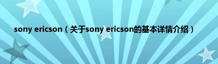 本文关于sony ericson的基本详情介绍就讲解完毕,希望对大家有所帮助。