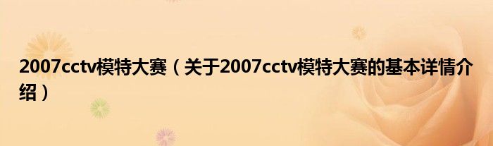 本文关于2007cctv模特大赛的基本详情介绍就讲解完毕,希望对大家有所帮助。