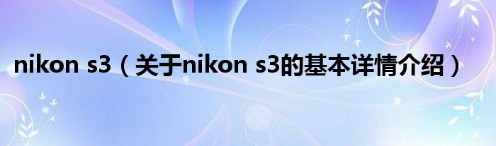 本文关于nikon s3的基本详情介绍就讲解完毕,希望对大家有所帮助。