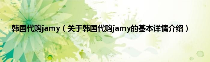 本文关于韩国代购jamy的基本详情介绍就讲解完毕,希望对大家有所帮助。