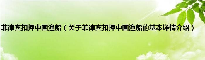 本文关于菲律宾扣押中国渔船的基本详情介绍就讲解完毕,希望对大家有所帮助。