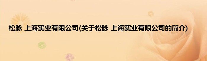 大家好,松脉 上海实业有限公司,关于松脉 上海实业有限公司的简介很多人还不知道,现在让我们一起来看看吧!