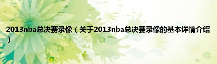 本文关于2013nba总决赛录像的基本详情介绍就讲解完毕,希望对大家有所帮助。