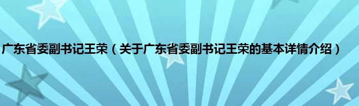 本文关于广东省委副书记王荣的基本详情介绍就讲解完毕,希望对大家有所帮助。