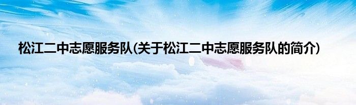 大家好,松江二中志愿服务队,关于松江二中志愿服务队的简介很多人还不知道,现在让我们一起来看看吧!