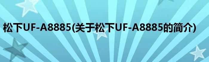 本文关于松下UF-A8885的简介就讲解完毕,希望对大家有所帮助。
