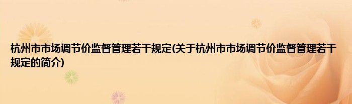 本文关于杭州市市场调节价监督管理若干规定的简介就讲解完毕,希望对大家有所帮助。