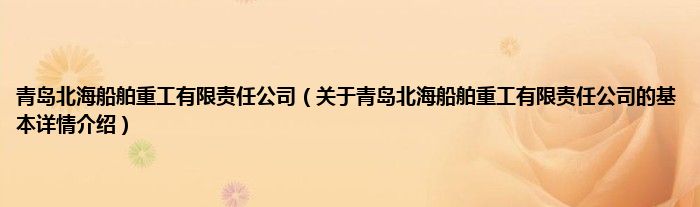 本文关于青岛北海船舶重工有限责任公司的基本详情介绍就讲解完毕,希望对大家有所帮助。