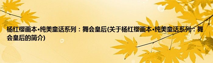 1、 《杨红樱画本·纯美童话系列:舞会皇后》内容简介:深受中国孩子欢迎的畅销书作家杨红樱,早期创作了大量优美的童话,并产生了广泛的影响,一直深受小读者的喜爱。