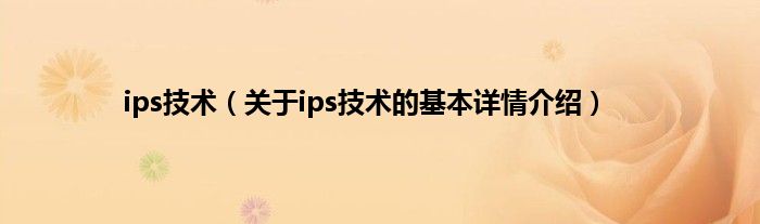 大家好我是小蝌蚪,ips技术,关于ips技术的基本详情介绍很多人还不知道,那么现在让我们一起来看看吧!