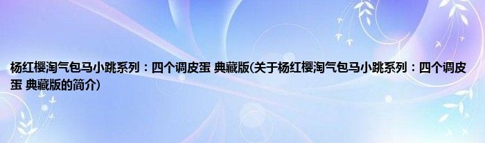 1、 《杨红樱淘气包马小跳系列:四个调皮蛋(典藏版)》是2013年2月1日浙江少年儿童出版社出版的图书,作者是杨红樱。