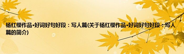 本文关于杨红樱作品·好词好句好段:写人篇的简介就讲解完毕,希望对大家有所帮助。