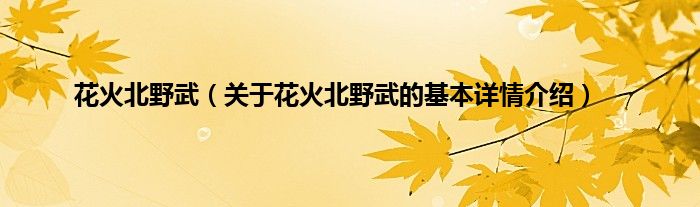 本文关于花火北野武的基本详情介绍就讲解完毕,希望对大家有所帮助。