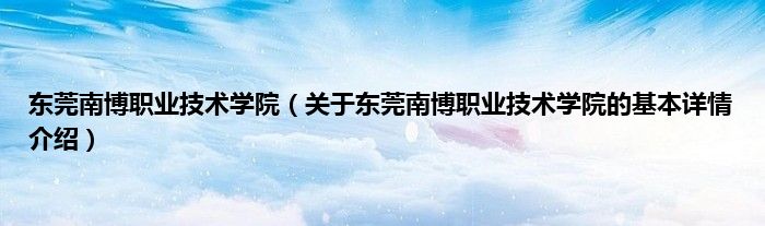 本文关于东莞南博职业技术学院的基本详情介绍就讲解完毕,希望对大家有所帮助。