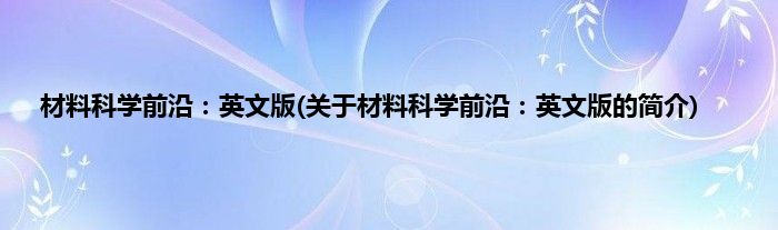 大家好,材料科学前沿:英文版,关于材料科学前沿:英文版的简介很多人还不知道,现在让我们一起来看看吧!
