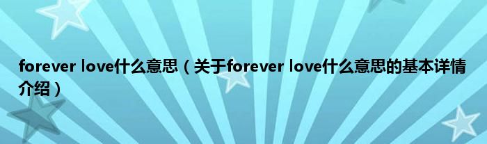 本文关于forever love什么意思的基本详情介绍就讲解完毕,希望对大家有所帮助。