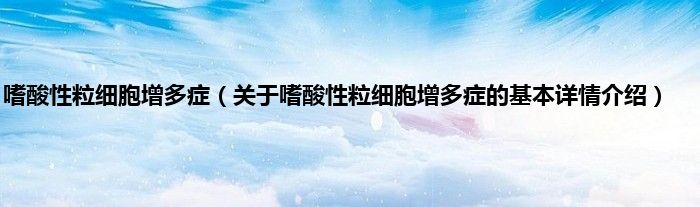 本文关于嗜酸性粒细胞增多症的基本详情介绍就讲解完毕,希望对大家有所帮助。